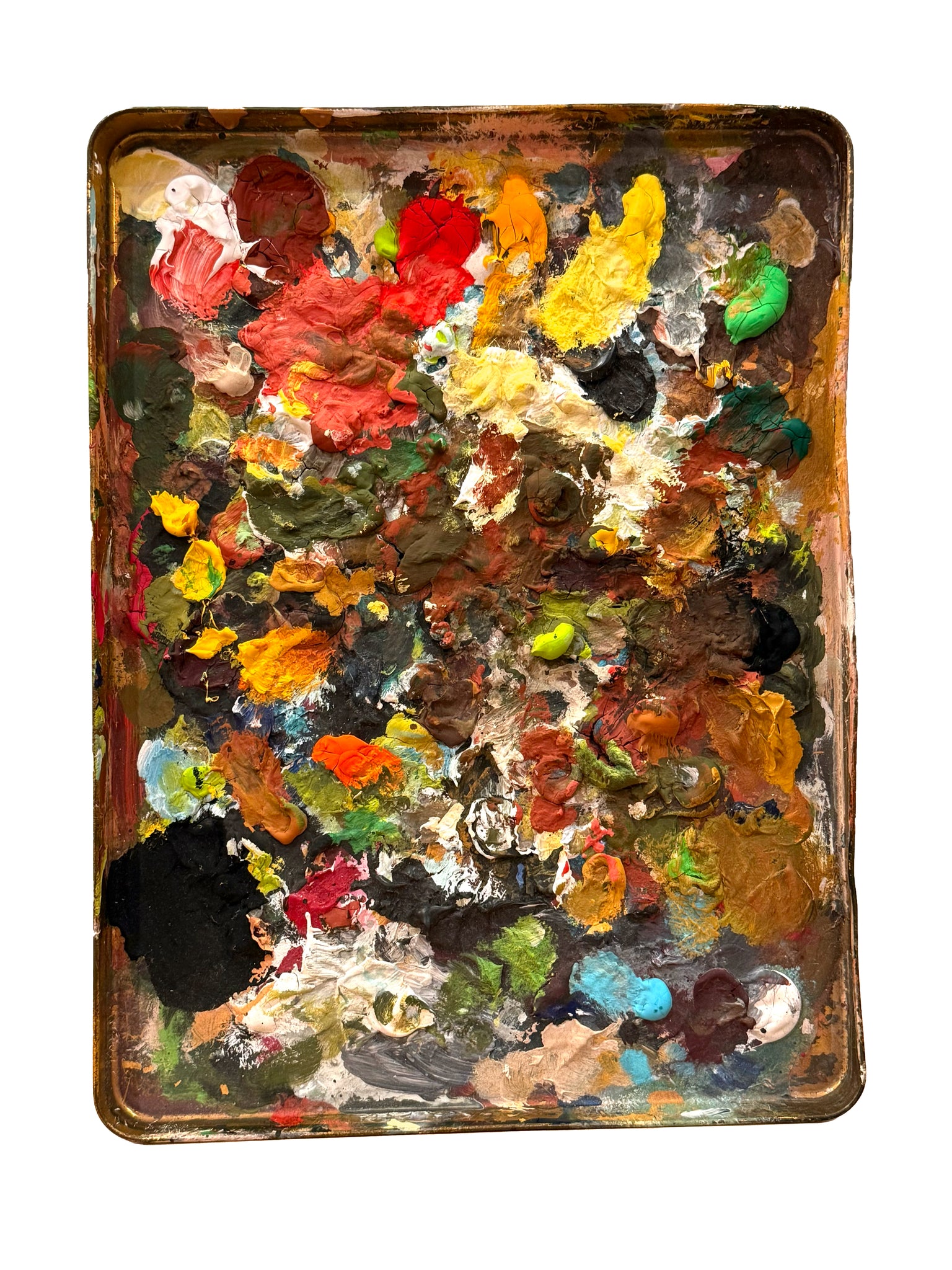 絵の具が固まった“クッキー缶パレット”をそのままプリント。